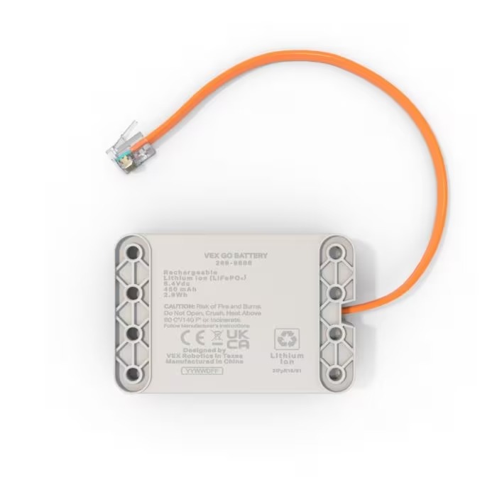 GO Batteryは電子部品を含むVEX GOの組み立てに不可欠です。電子パーツに電力を供給し、BrainまたはSwitchのオレンジ色のポートに接続します。